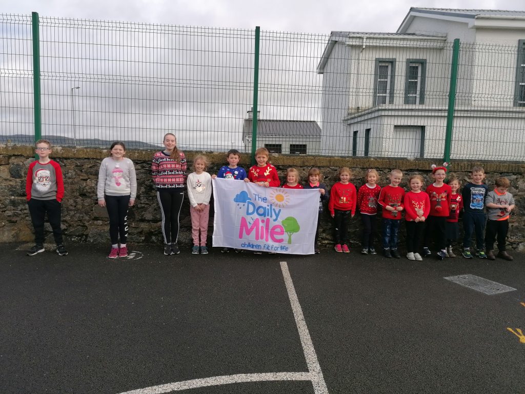 The senior class have been working very hard to improve their fitness levels since September. Every day, we complete 12 laps of our school yard at 12.00. Our original aim was to run for 1 mile every day. However, as each week went by, we realised that we were capable of so much more than 1 mile per day! On Friday, the 11th of December, we succeeded in running from our school to the Harry Blaney Bridge, a total of 6.6km! We had a lot of fun and we are so proud to have earned a daily mile flag for our school! We are also aware that ‘What’s good for the body is good for the mind’ and vice versa. We have all been focusing on our mental health this year and we know that running allows us to clear our heads, exercise and get lots of fresh air. It encourages us to take a break from our screens and appreciate the beautiful nature of our local area. Plus it’s a completely free form of exercise which doesn’t require a partner or a group to enjoy! So many benefits!