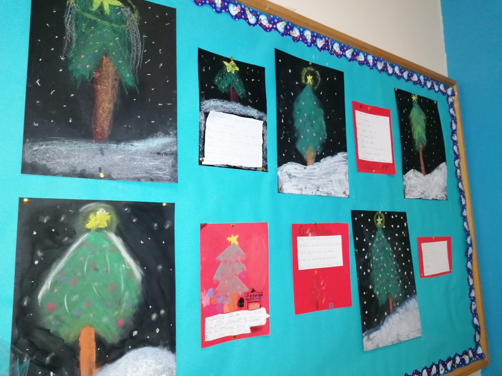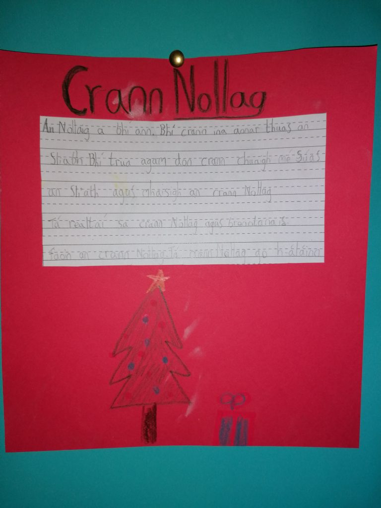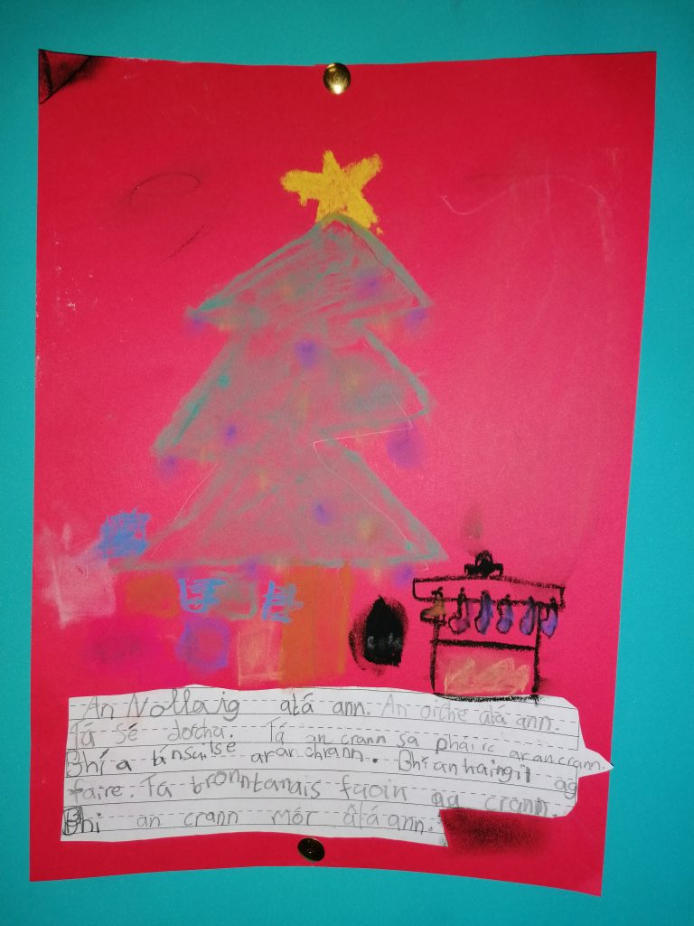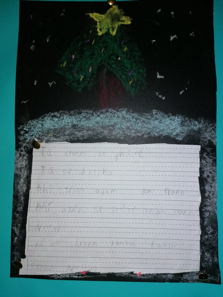 Chomh maith le ba a mhaisiĂș, is breĂĄ leis na pĂĄistĂ crainn nollag a mhaisiĂș. Rinne siad crainn Nollag galĂĄnta le cailc. Bhain na pĂĄistĂ ĂșsĂĄid as an spreagadh sin chun scĂ©alta a saor-scrĂobh darbh ainm ‘An Crann Nollag’.