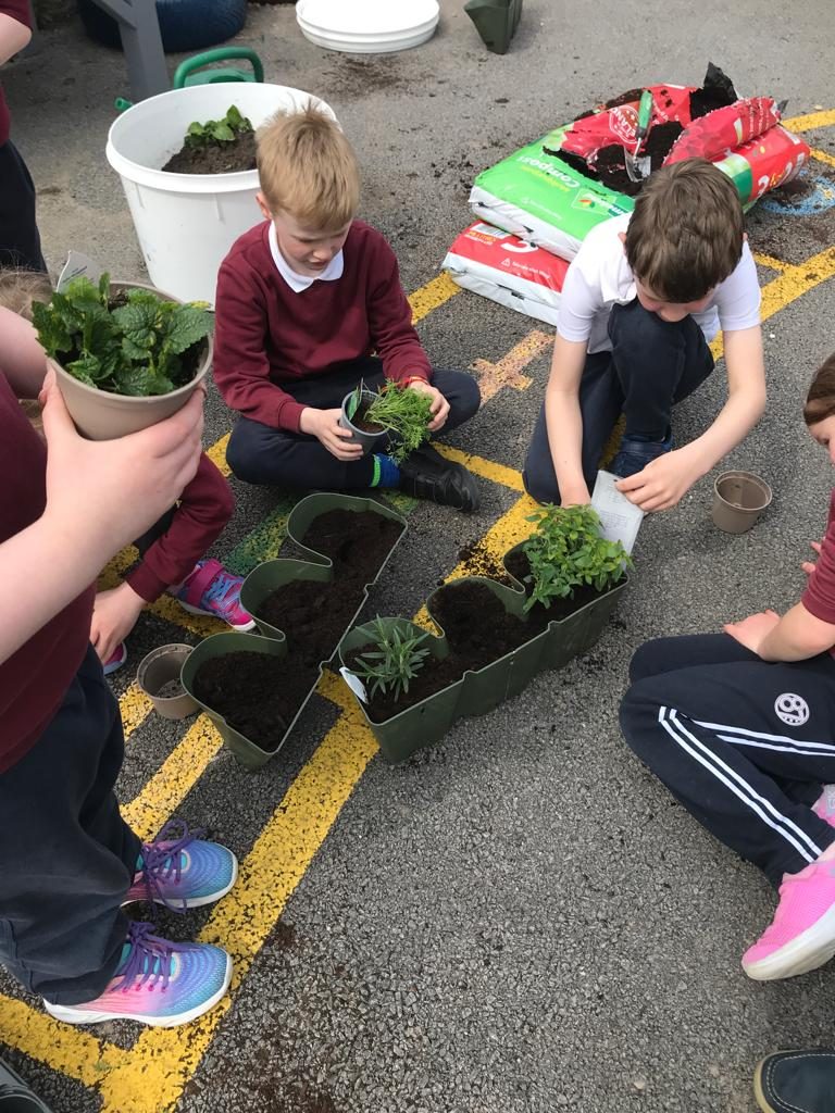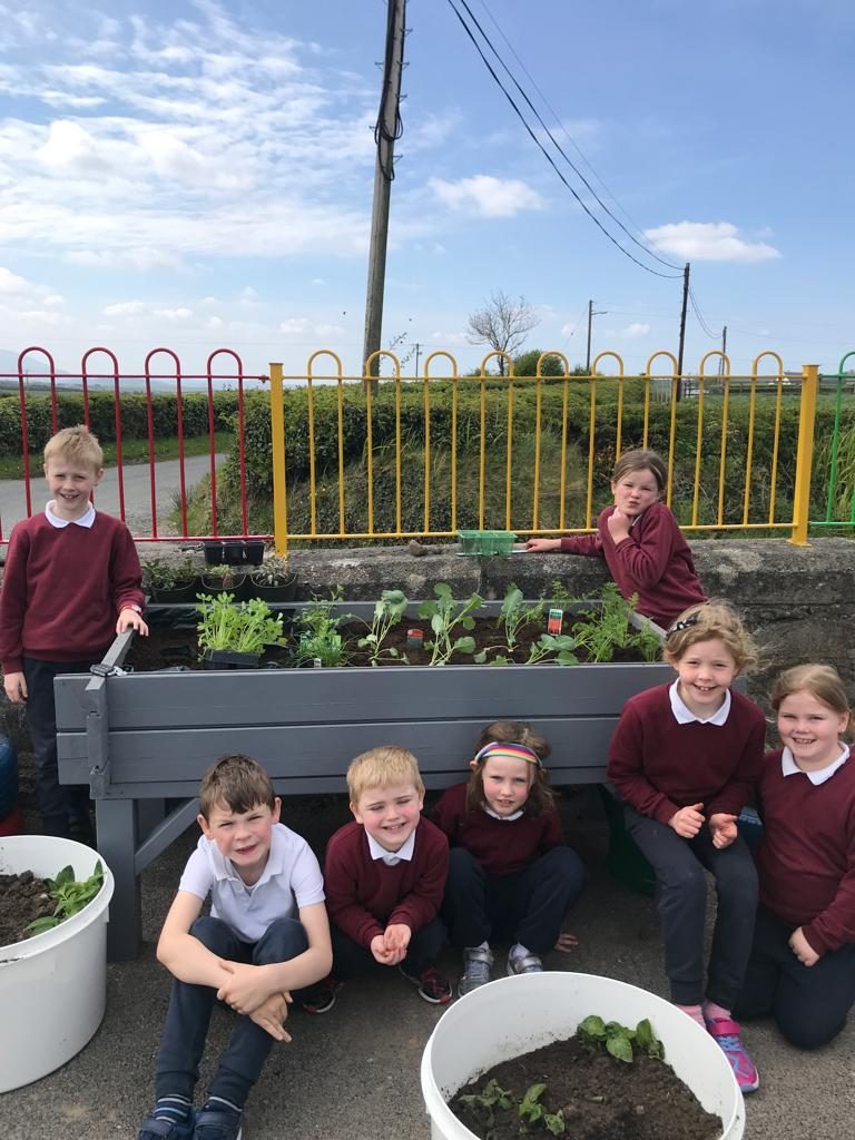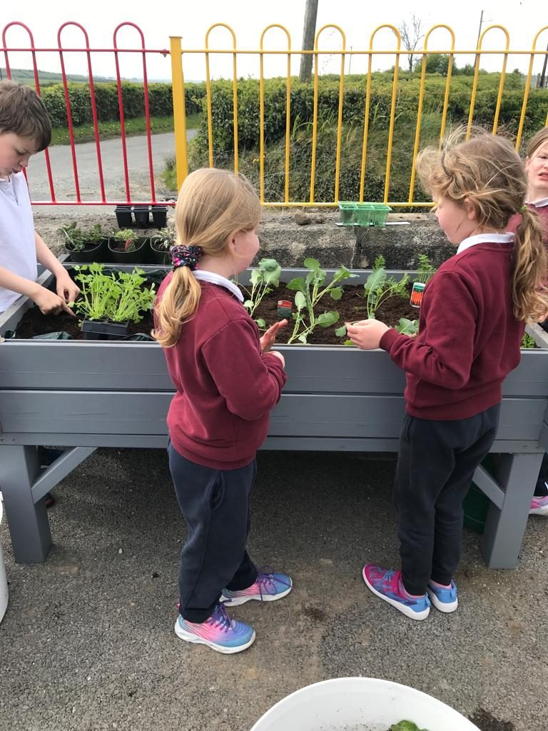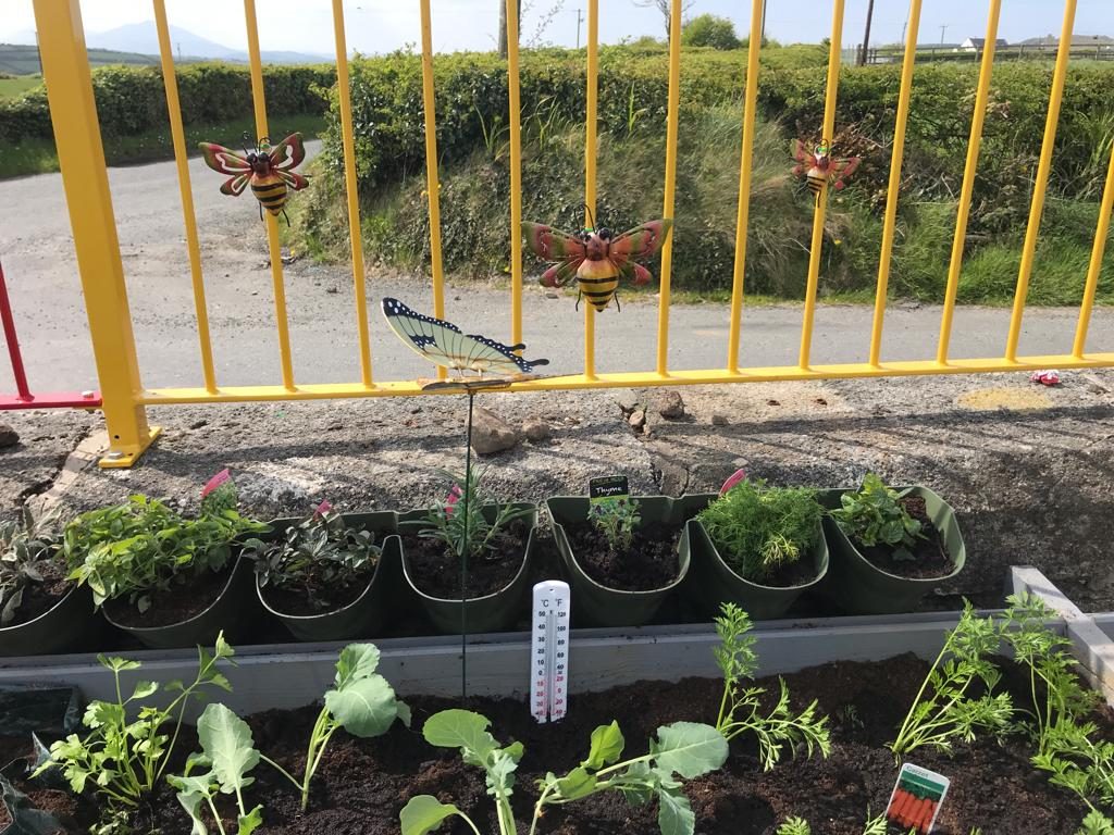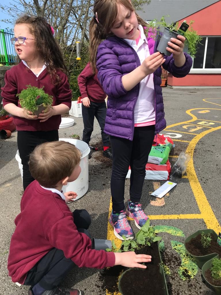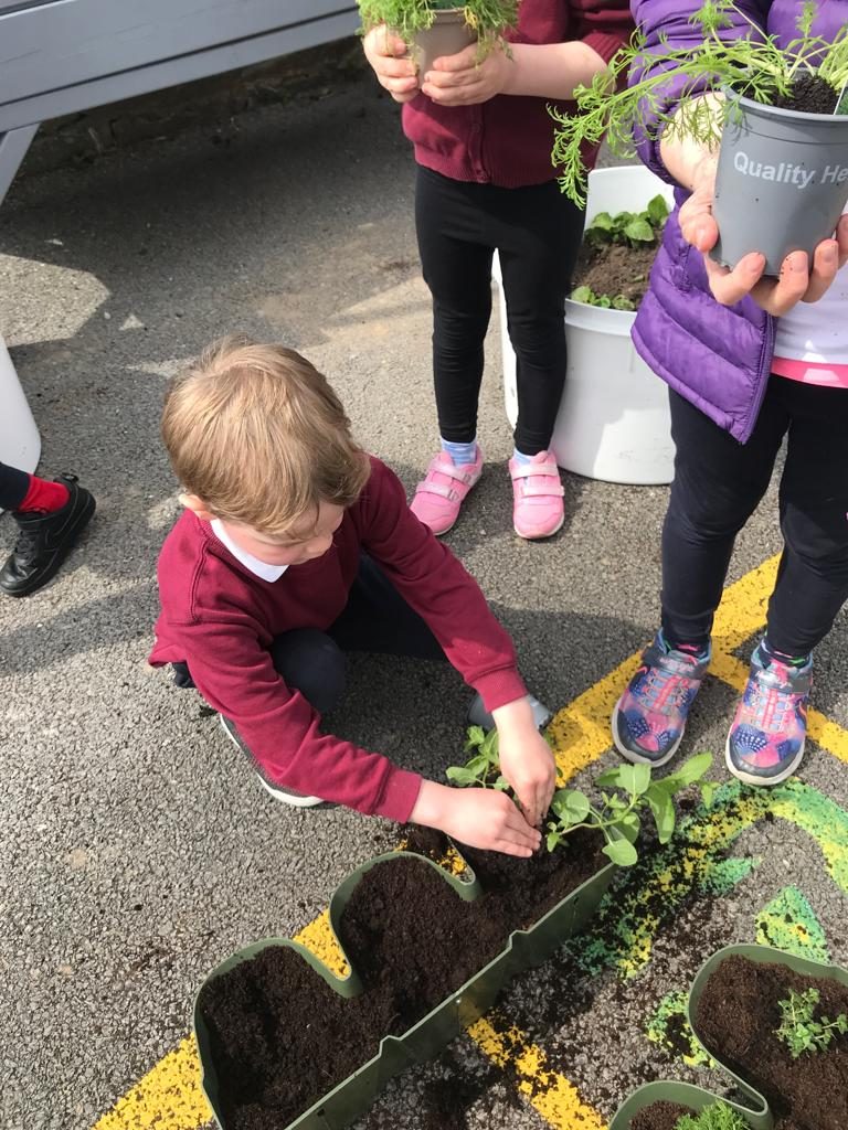 Last week, the children helped MĂșinteoir RoisĂn to plant a variety of herbs and vegetables.