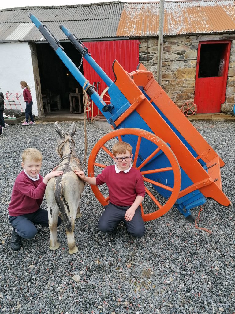 Our school had a wonderful visit to Teach MĂcĂ Ban today. We are so grateful to Hugo and Margaret who showed how people lived, how they worked and what they used in years gone by. Things have definitely changed alot. We particularly loved having our lunch beside a lovely turf fire!