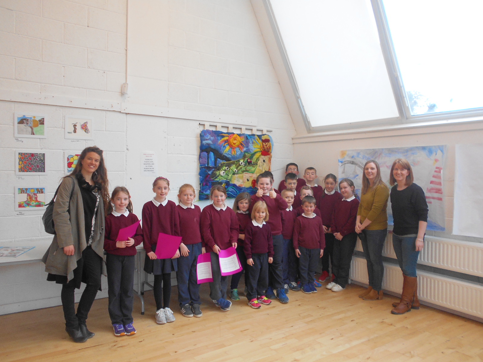 We all travelled to the Regional Cultural Centre on 9th Dec 2016 to attend the Exhibition of our Artwork which we designed with Rebecca Marsden, Fashion Designer. We were so proud of our artwork. Emily, Roisin, Caoimhe and Aoibhinn presented our work to the large crowd who attended the exhibition. We had lots of yummy food at the Cultural Centre afterwards. The Director of the Crafts Council of Ireland , and the Director of the Donegal Education Centre both highly commended our school for the outstanding presentation and for the beautiful Design we created of the Fanad Peninsula.