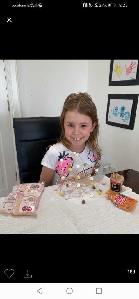 MĂșinteoir RĂłisĂn put a really fun timetable of activities together. We made some really cool constructions like boats and houses that were built to last. Others things were constructed, then eaten like our delicious pancakes! We carried out lots of experiments and the senior class even had the opportunity to interview an architect and a civil engineer via Class Dojo! Well done to all the families who participated. Congratulations to Sarah, Callum and Chloe who were our STEAM champions in the junior class and to Kaitlyn and Aaron who were our STEAM champions in the senior class!
