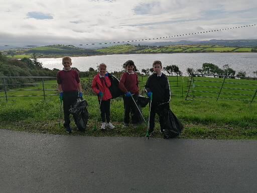 We also took part in the annual clean up, organised by the Fanad Coastal group. The senior class walked along the road towards the bridge and used pickers to pick up any rubbish they could find along the way. The junior class helped MĂșinteoir GrĂĄinne and MĂșinteoir RĂłisĂn to pick up rubbish along the road past the church.