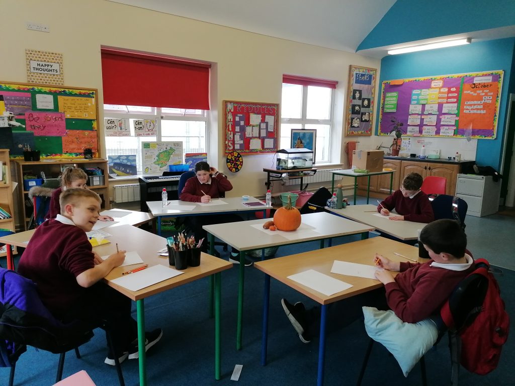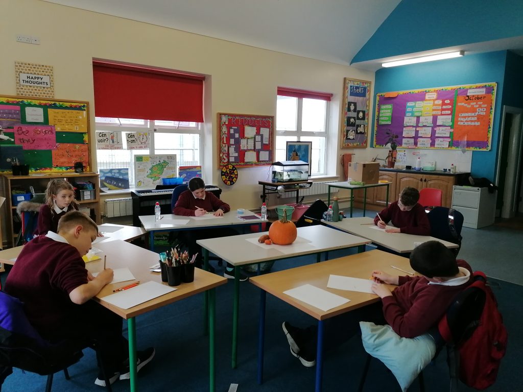 The senior class have been working hard at drawing what they see in front of them, to shade the darkness and to show light. We have been setting up a still lifes in the centre. Our class have enjoyed drawing our still life from different perspectives!