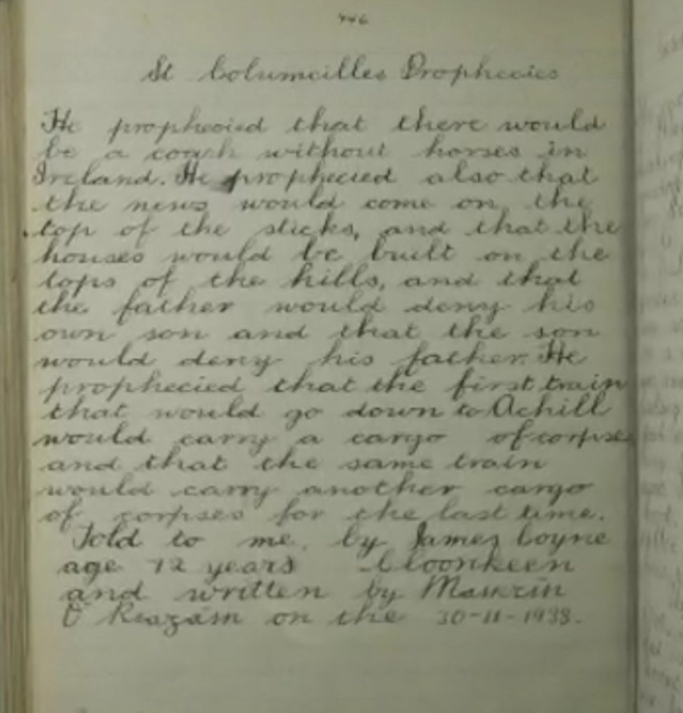 We are very proud of our senior class. The pupils have collaborated in order to enter a competition to celebrate the life and legacy of St. Colmcille. We first began learning about St. Colmcille last year when we took part in a virtual workshop with a heritage expert. We learned about the life of St. Colmcille and the symbols we associate with him. There was soooo much to learn about St. Colmcille so we decided to brainstorm and pick one area to focus on. We decided to focus on the prophecies of St. Colmcille which were fascinating to us. We looked at many prophecies on dĂșchas.ie which had been recorded by children who were in school in Fanad during the 1930s. We found out that St. Colmcille made lots of prophecies which we believe have come true already! We decided to create a cartoon based on five of St. Colmcille’s prophecies (because there are five of us!) We used modelling clay to make miniature people and miniature sets. We each brought in a shoe box and used paint and paper to create back drops. We typed up a script based on the telling of the prophecies. We each did voiceovers in order to re-enacted the telling of the prophecies and how many of them came to pass. We used an app to make our clay model figures and we had to take loads and loads of pictures to show the movement. Aaron edited the video and we are so happy and excited about our video project!