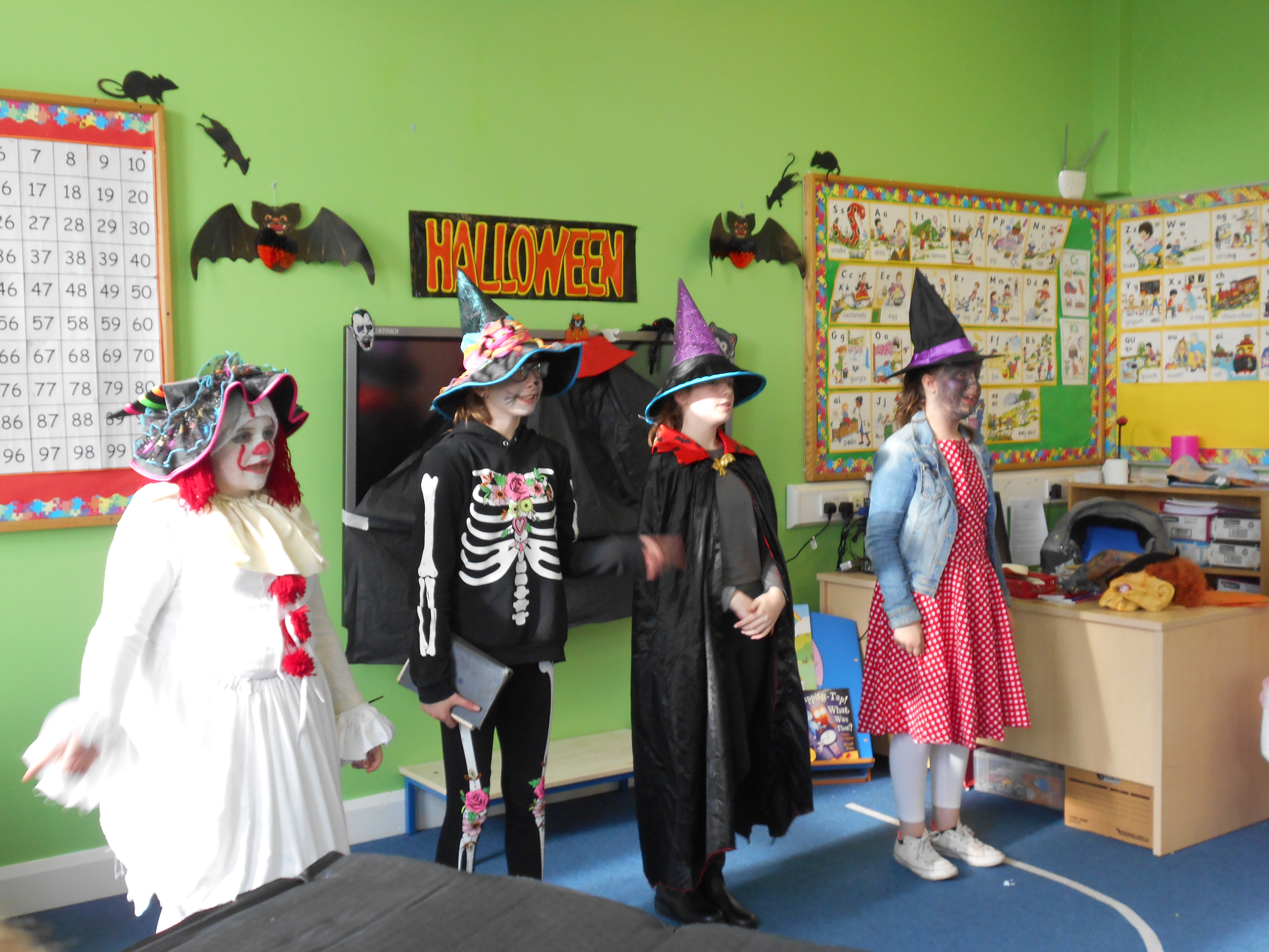 Both the junior and senior class prepared poems and songs relating to the themes of Autumn, Harvest and of course, Halloween. Both classes gave a fantastic performance and we are so proud of them!
